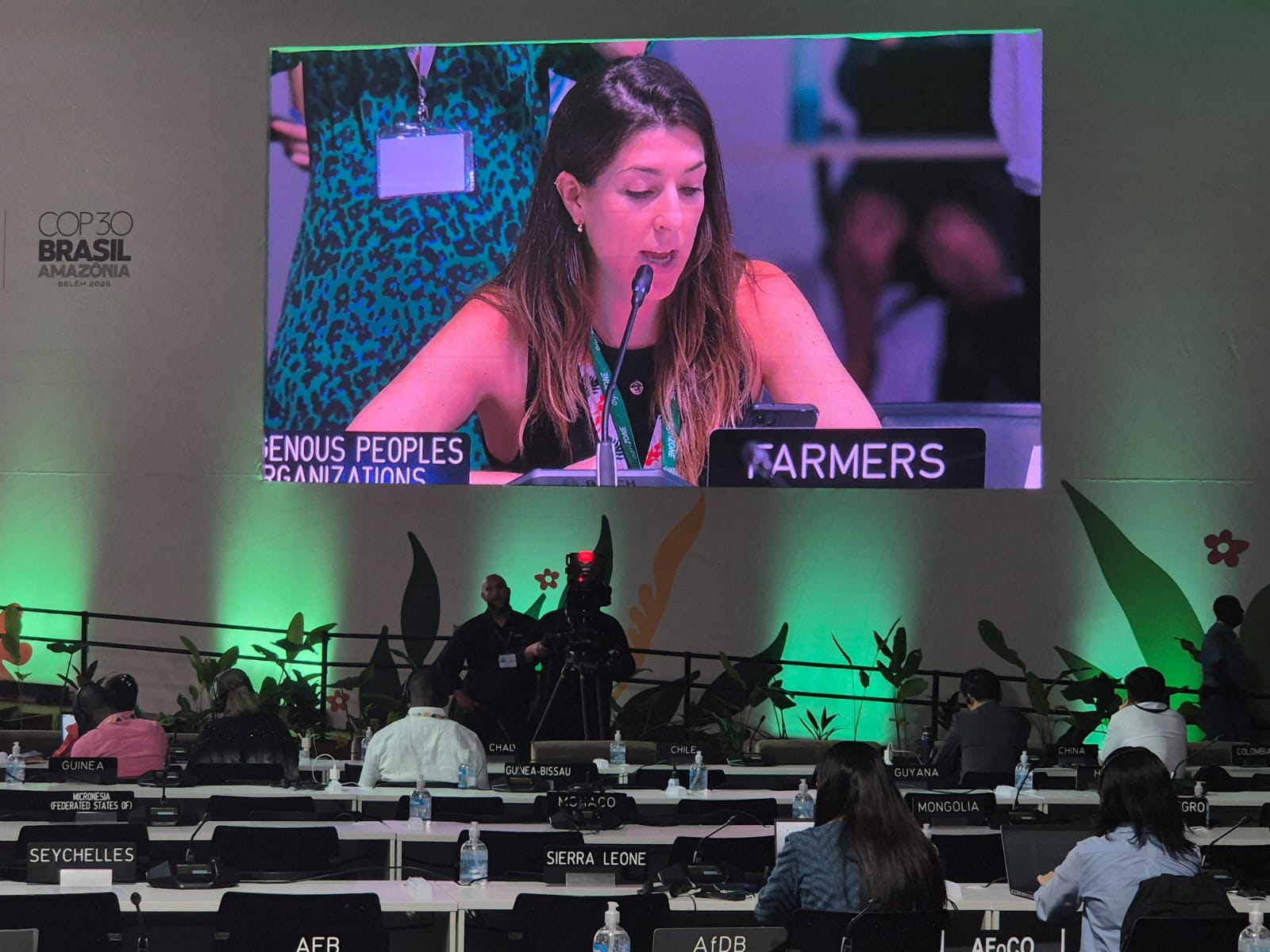 Participación de Mailén Saluzzio, Gerenta de Aapresid Internacional, durante la COP30 en Belén, Brasil.