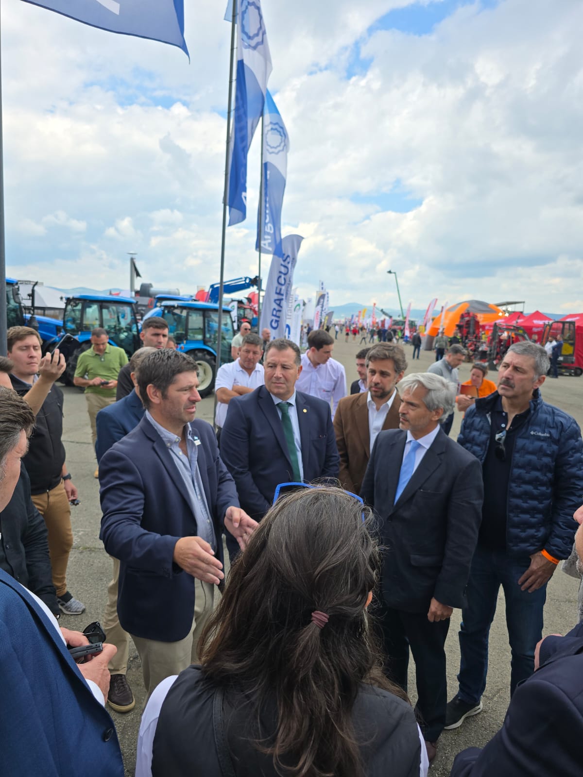 Santiago Guazzelli en la feria Bata Agro 2025, Bulgaria, junto al Embajador argentino y representantes de empresas del sector.