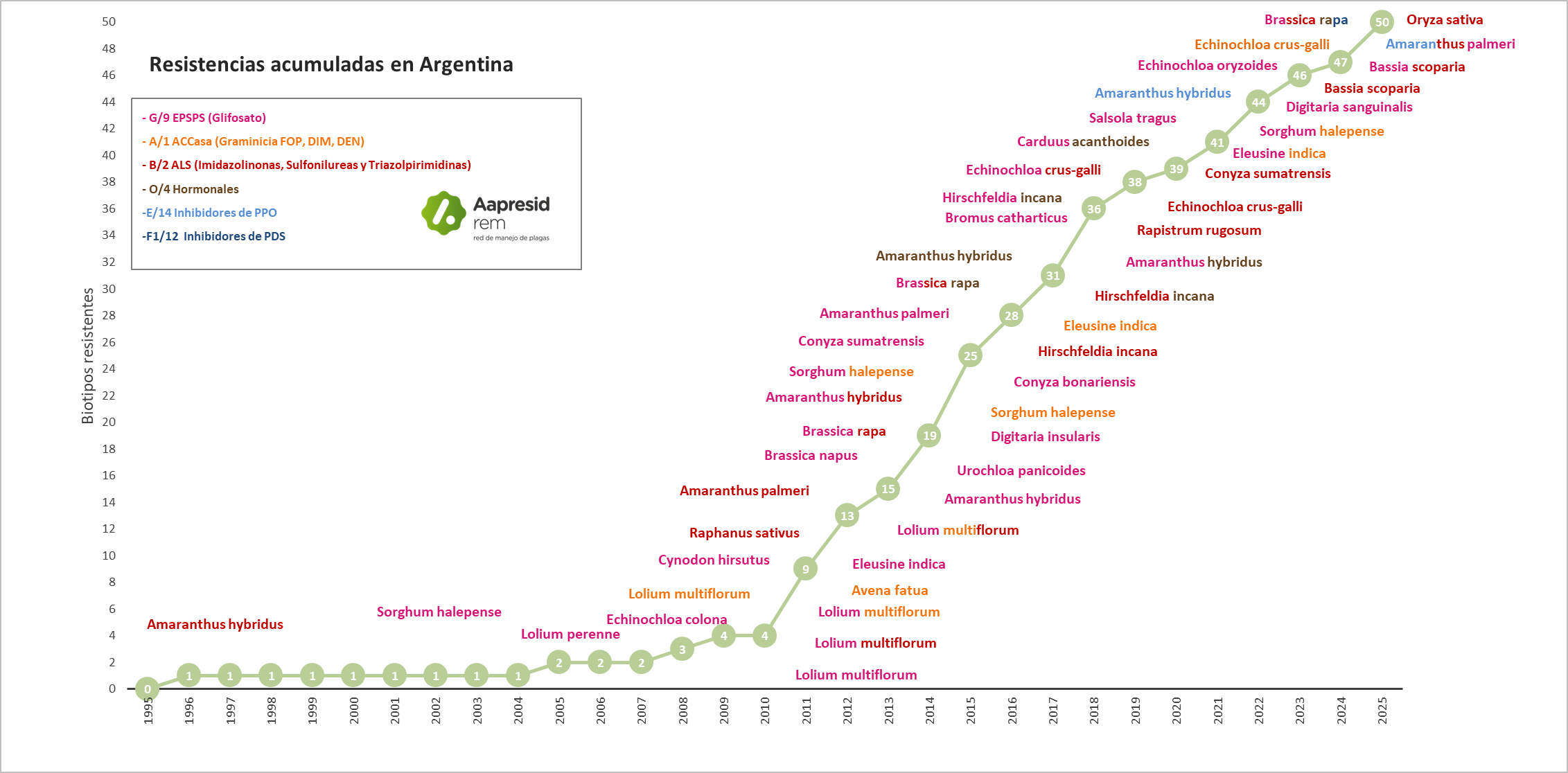Resistencias acumuladas en Argentina por modo de acción